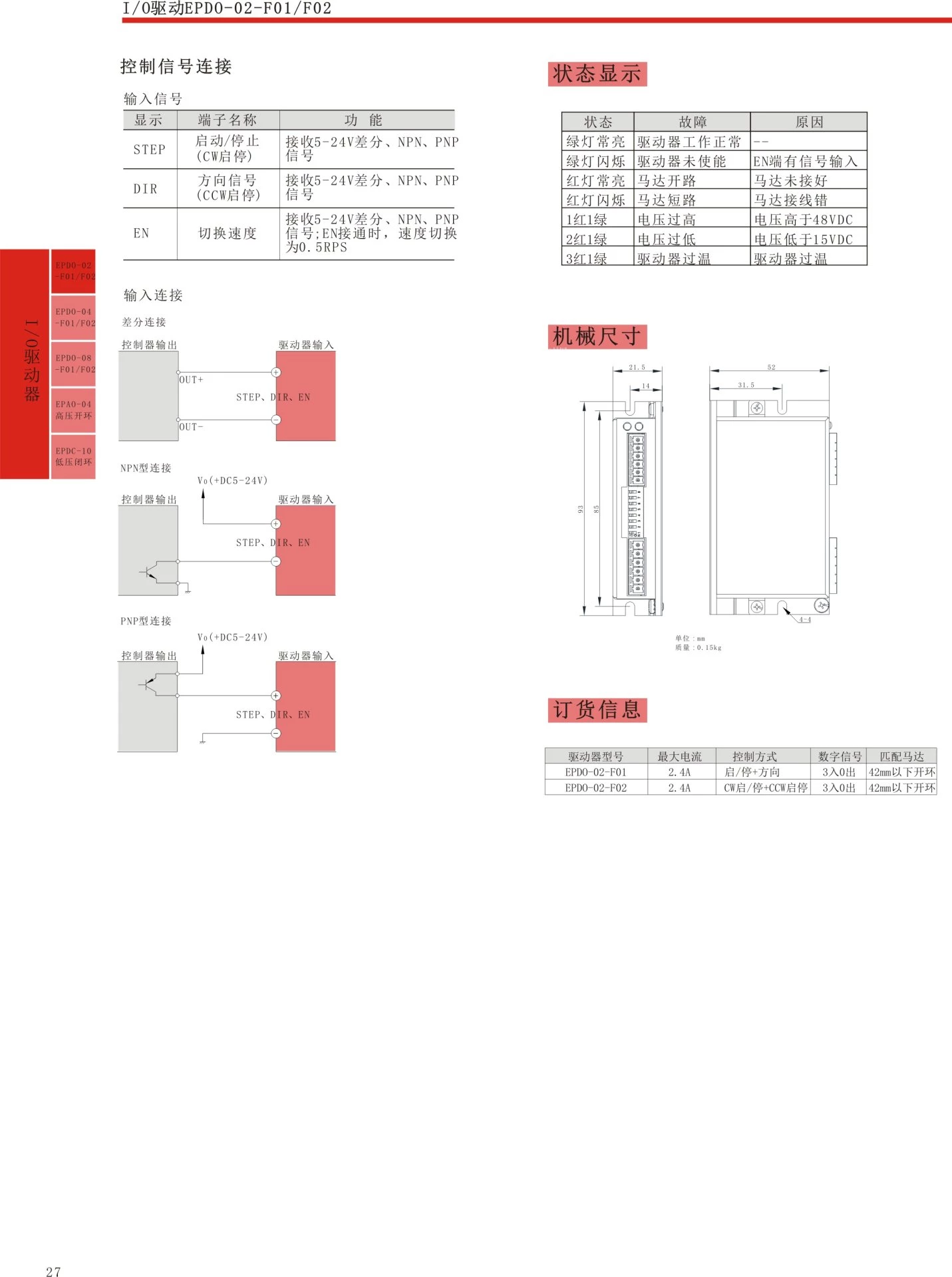 Two phase stepper driver, maximum output current 2.4A, input voltage 15-48VDC, start/stop&direction, I0 speed control, 16 speed options, control signal 5-24V, compatible with 20-42mm stepper motors, multiple electrical protections