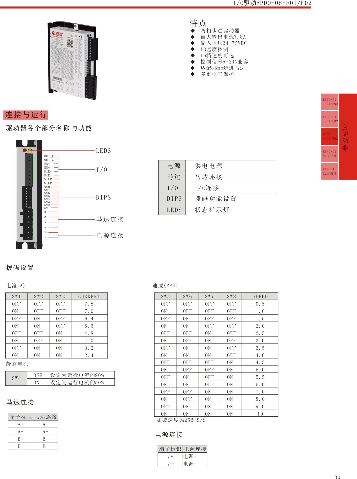 Two phase stepper driver, maximum output current 7.8A, input voltage 24-75VDC, I0 speed control, 16 speed options, control signal 5-24V, compatible with 86mm stepper motor, multiple electrical protections