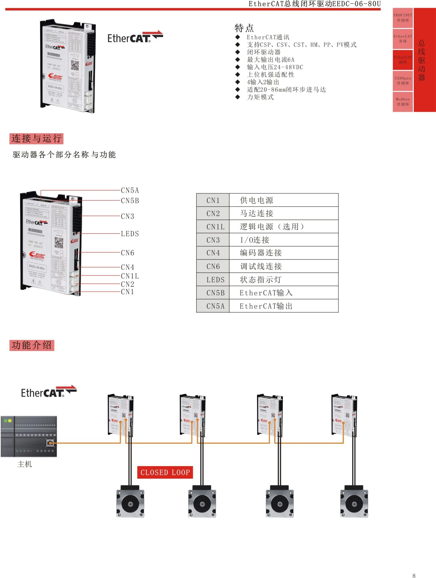 EtherCAT bus closed-loop driver EEDC-06-80U